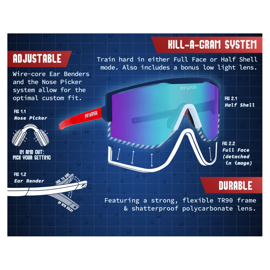 První sluneční brýle Pit Viper s vyměnitelnými skly. Lze je nosit s plnou nebo poloviční obrubou. Pit Viper Try Hard jsou ideální na jakýkoliv sport.