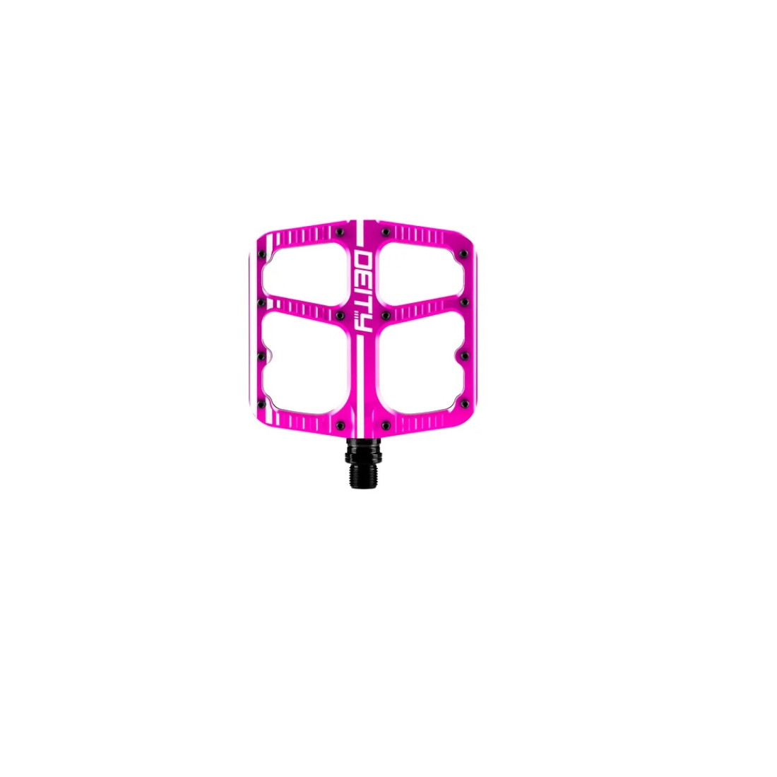 Pedály DEITY FLAT TRAK jsou doposud nejtenčí Deity pedály. Flat Trak sjednocuje Deity modely, které jsou symetrické a vyznačují se charakteristickým profilem pedálu bez odsazení. Velká plocha a 1mm konkávní hloubka umožňují noze nalezení optimální polohy. Flat Trak si již oblíbili enduro a freeride závodníci z Deity týmu. Se stejným důrazem na dokonalost se Flat Trak řadí po bok modelů Supervillain a TMAC jako jeden z nejvyšších výkonnostních pedálů.